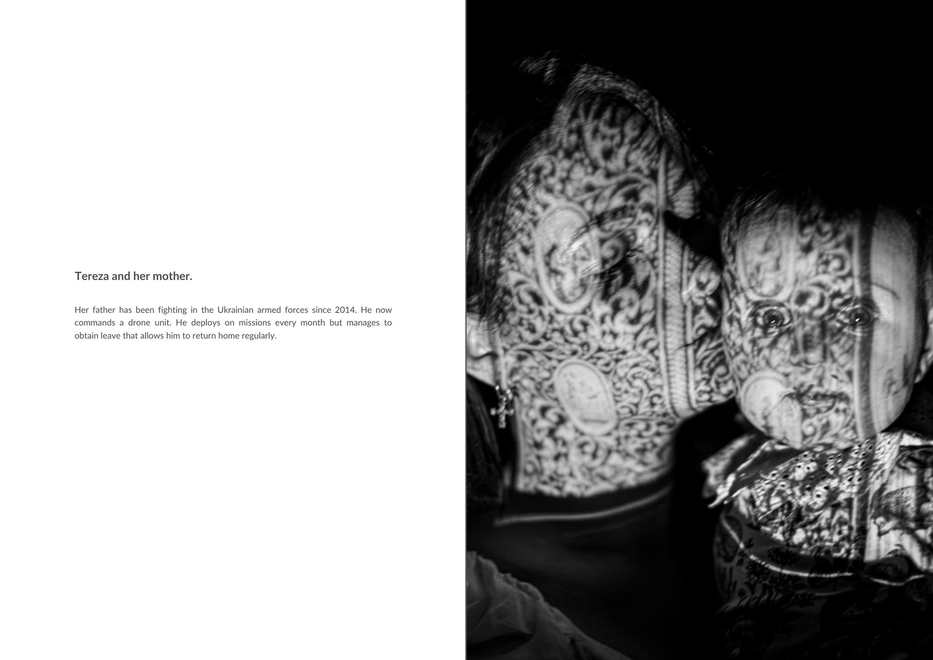 Baby Tereza and her mother. The husband has been fighting in the Ukrainian army since 2014. He now leads a drone unit. He goes on missions every month and manages to get regular leave to return home.
